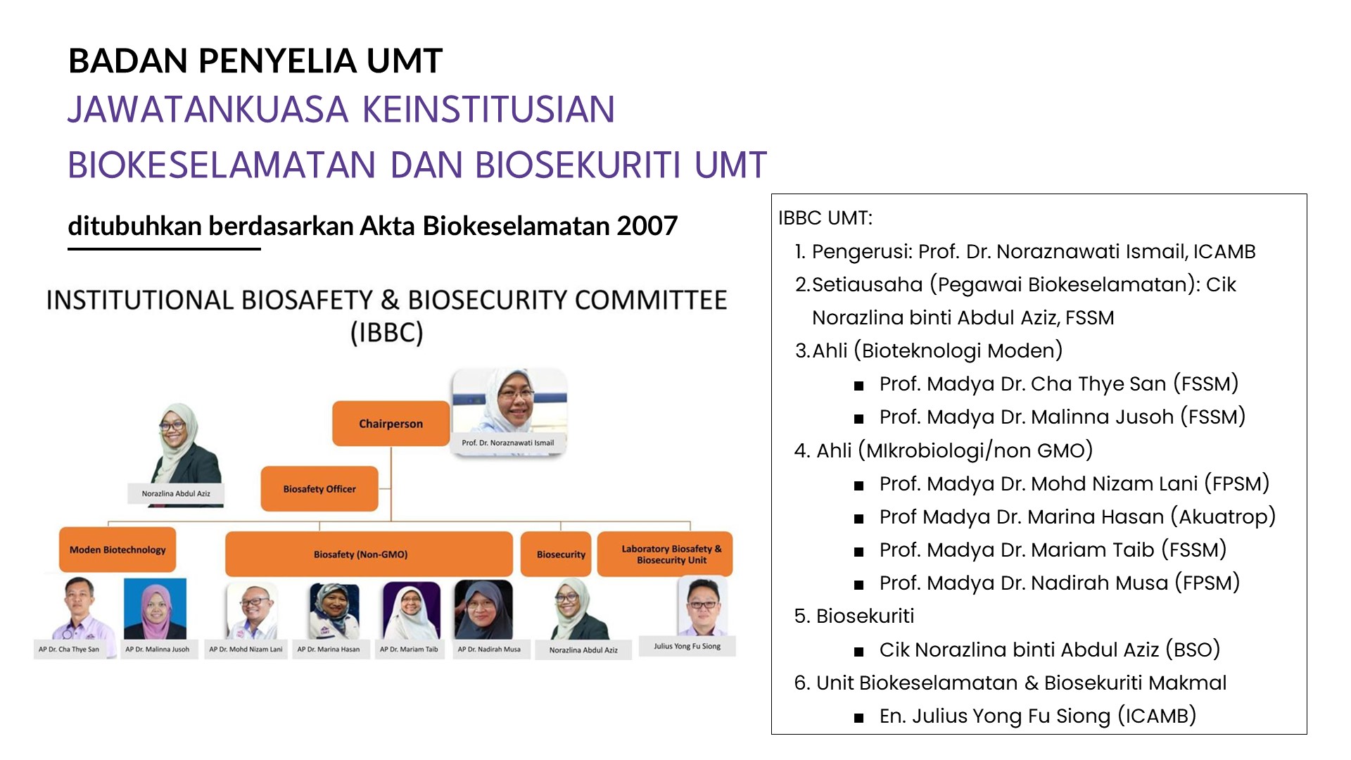 JAWATANKUASA BIOKESELAMATAN & BIOSEKURITI UMT